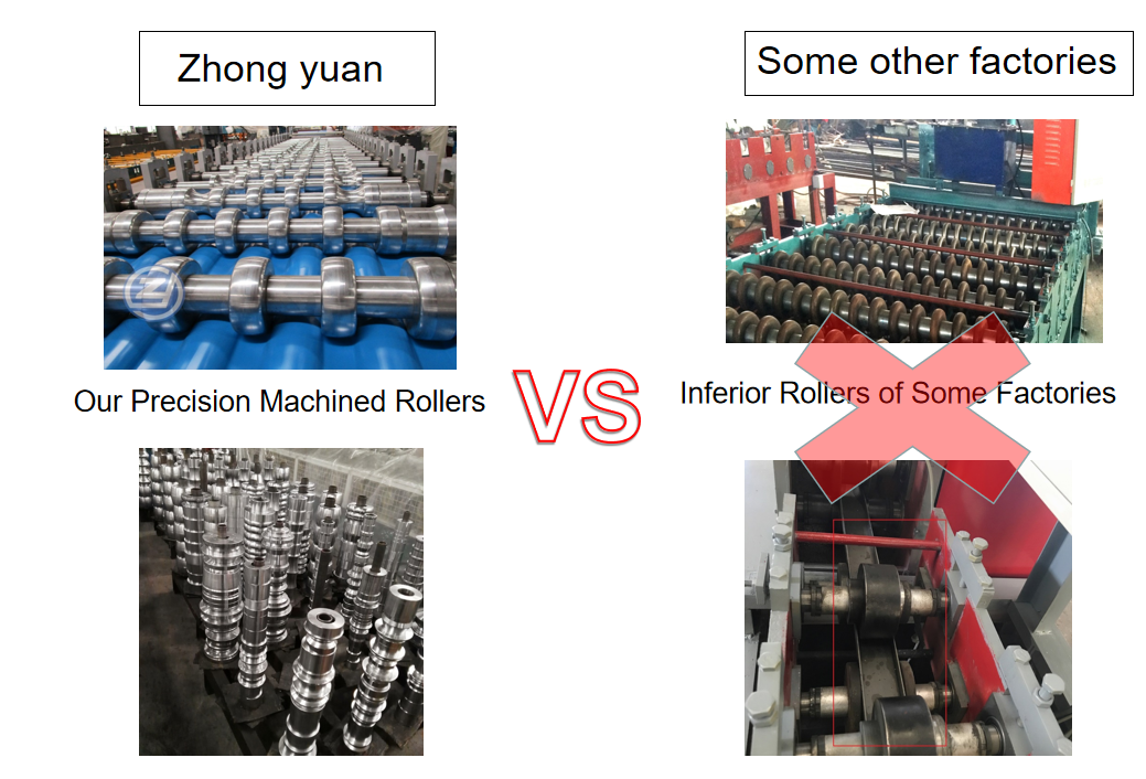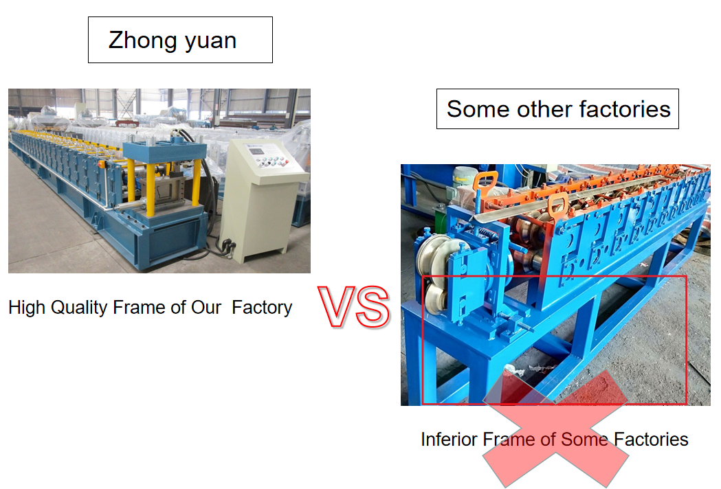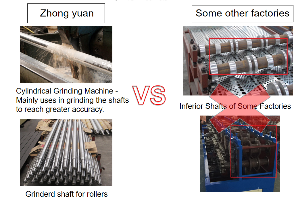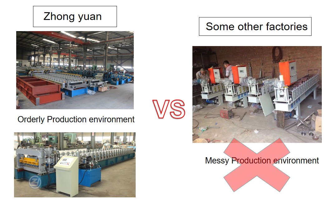 Zhongyuan é um fabricante de 'fonte completa', desde a matéria-prima até a máquina formadora de rolos de alta precisão final. Todas as máquinas são fabricadas em nossa fábrica.