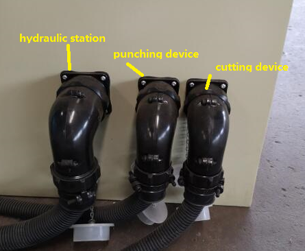 PASSO 4. Os tubos conectados vêm do dispositivo de corte, 10 tubos no total, 8 tubos são de 4 dispositivos de perfuração hidráulicos, dois tubos são do dispositivo de pós-corte.