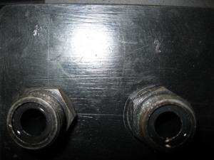 PASSO 6. Existem três orifícios na lateral do controlador. Esquerda para ligação da estação hidráulica; o do meio é para conectar o dispositivo de perfuração, o da direita para conectar o dispositivo de corte. Conecte-se de acordo com as orientações das fotos.