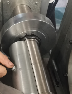 Passo 1. Como cada tamanho possui uma medida de largura, escolha o tamanho que deseja produzir. Coloque o medidor de largura na folga do eixo do rolo formador. Por exemplo, se quiser fazer o tamanho 258, use o 258 para colocar na folga do eixo.